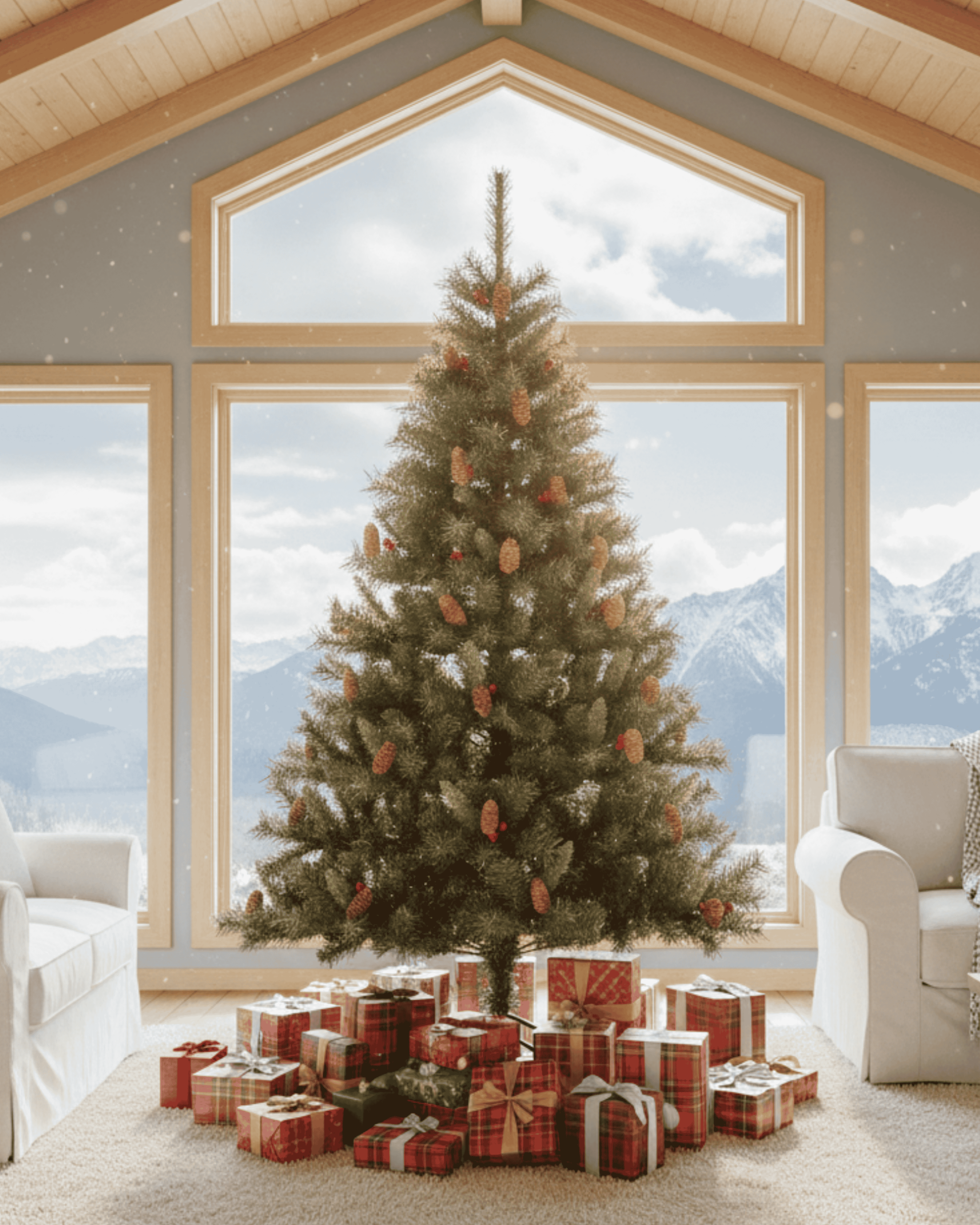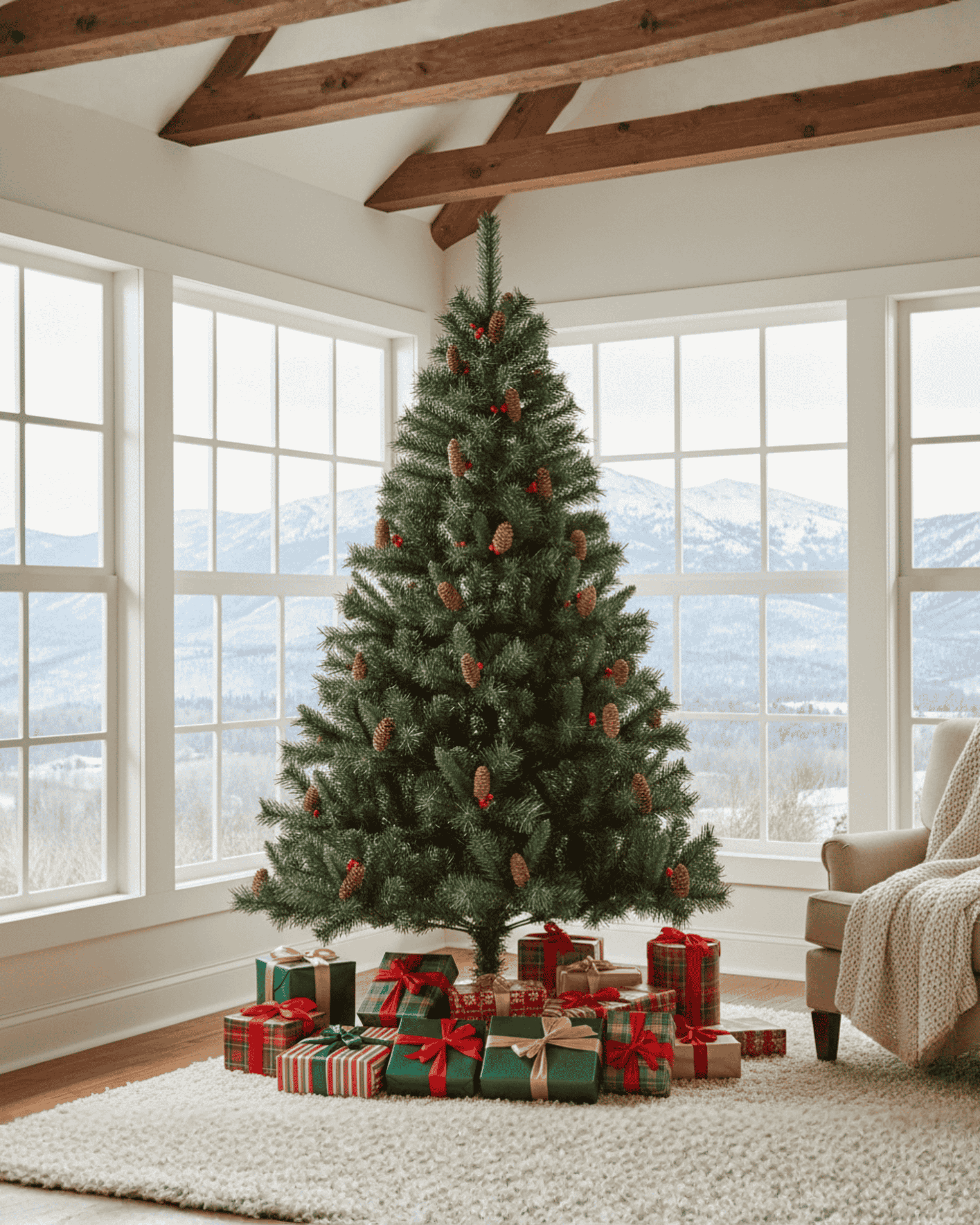 For a warm and rustic charm, explore Christmas trees decorated with pinecones and berries. These subtle details bring texture and depth, ideal for creating a welcoming family atmosphere.