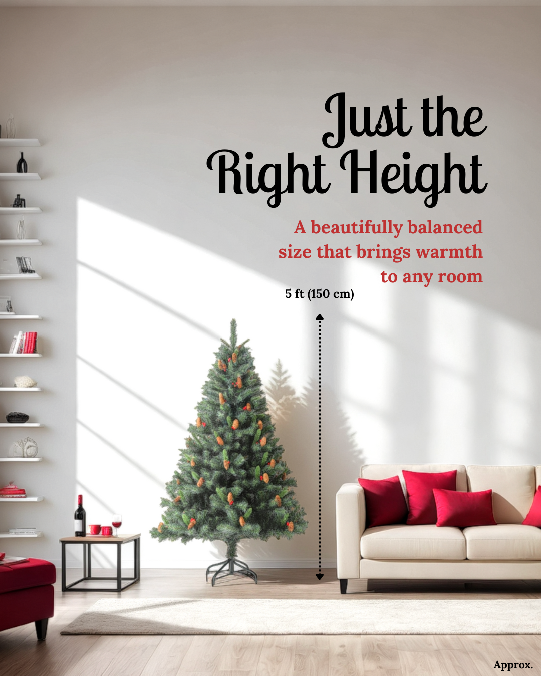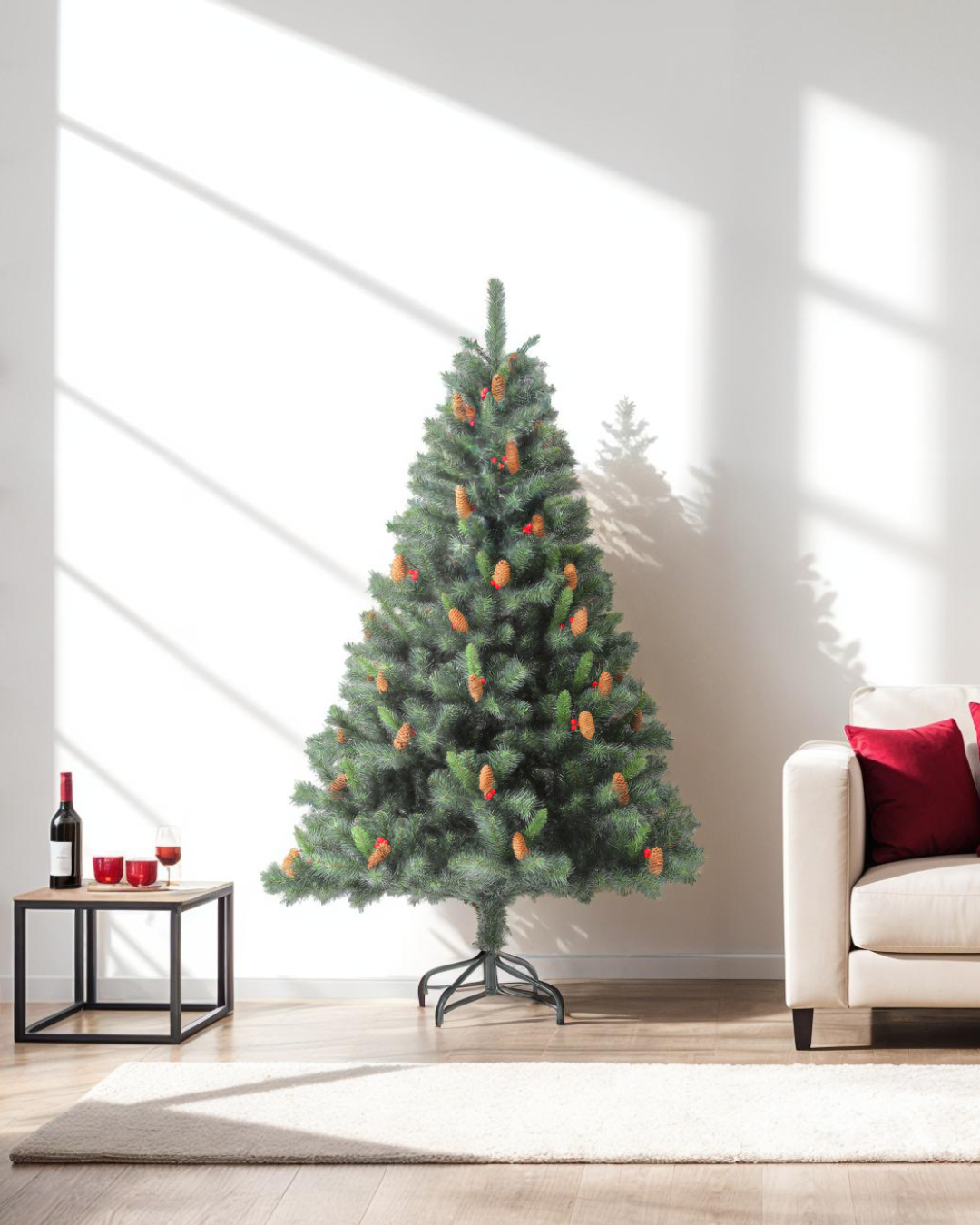 Evergreen Spruce Christmas Tree with Pine Cones & Berries, 5ft