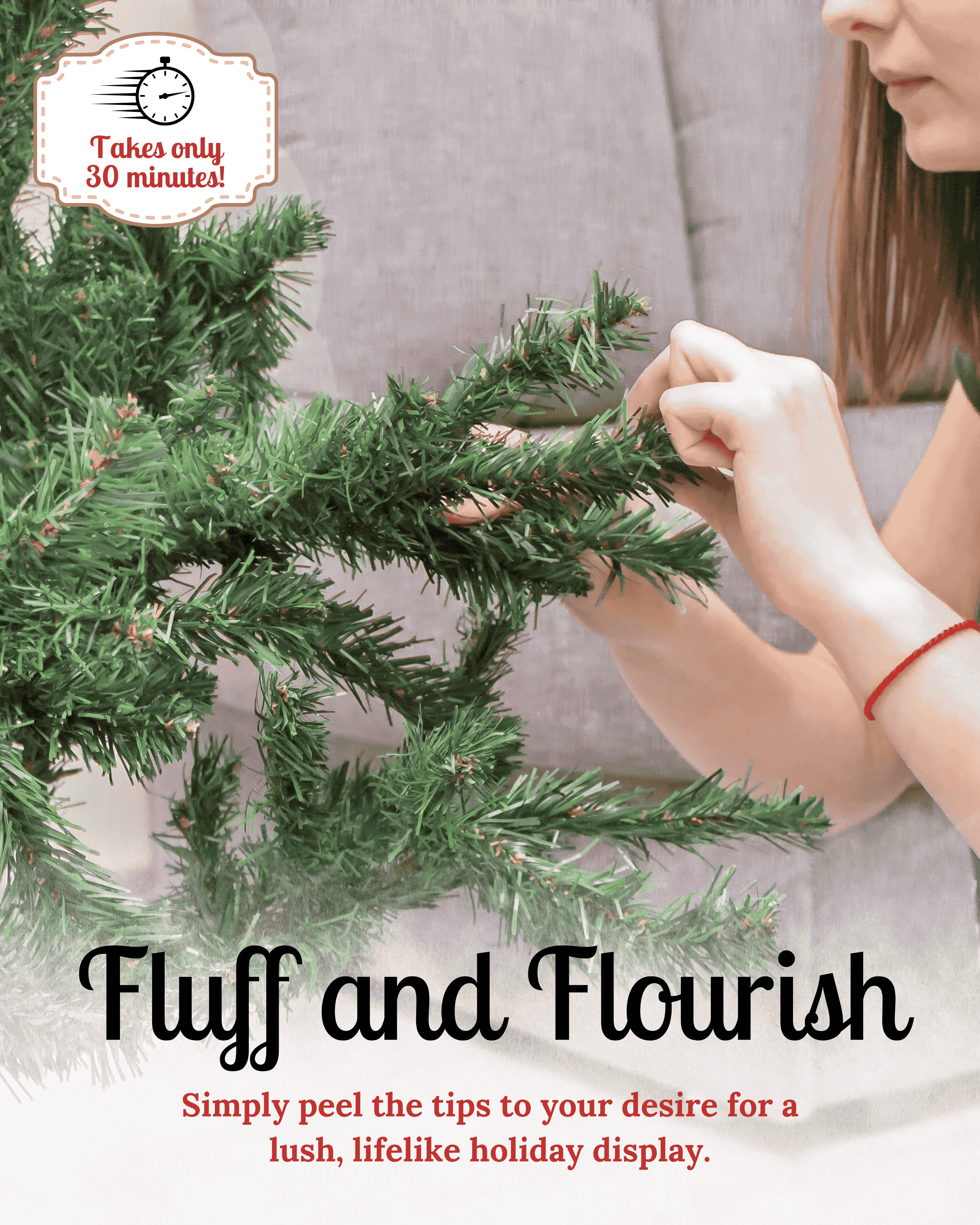 Embrace a wintry look with snowy flocked designs. Perfect for creating a magical festive backdrop in your living room without the upkeep of a real tree.