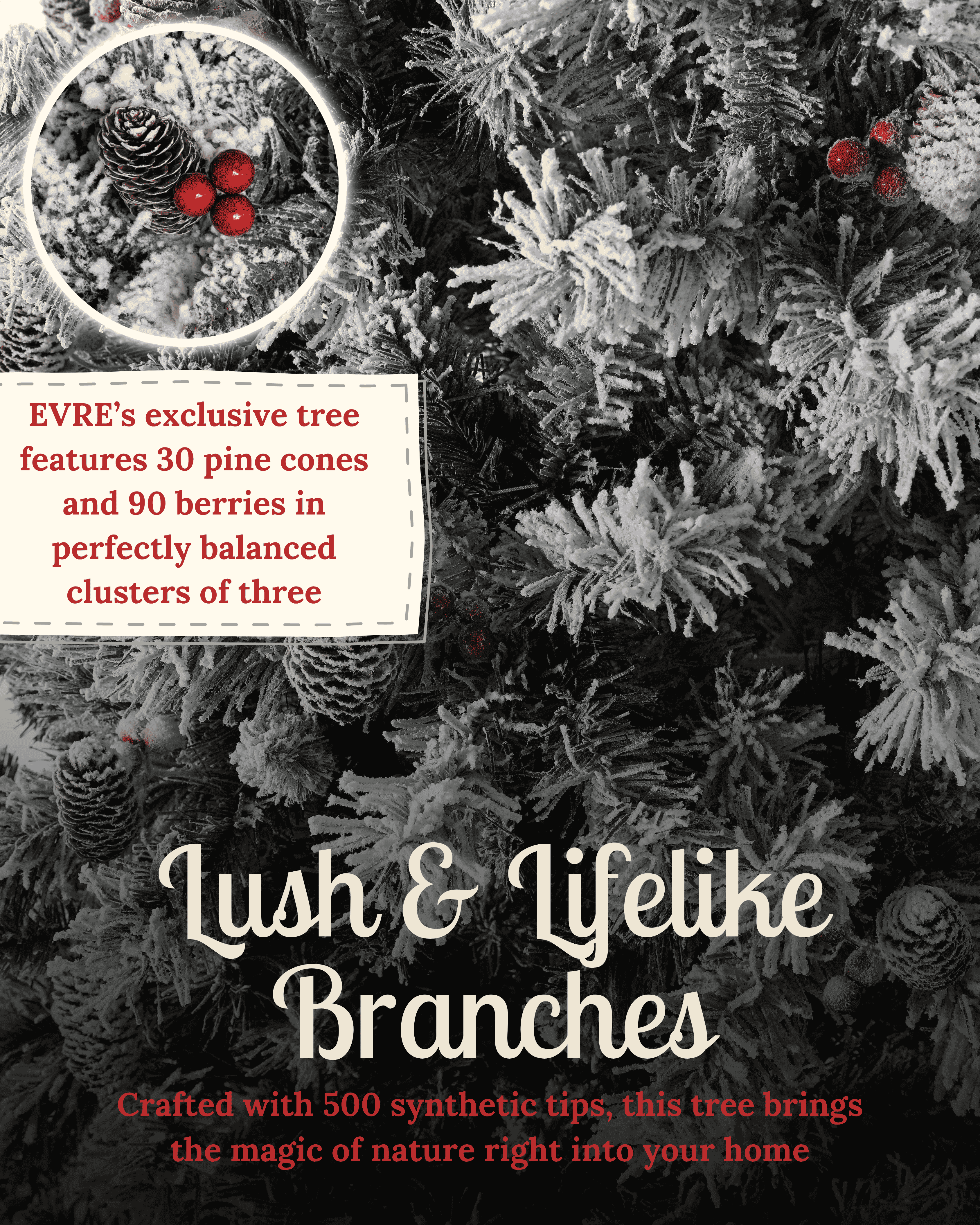 Bring the essence of winter indoors with our beautifully adorned artificial Christmas tree, blending the snowy charm of winter and the warmth of fall with pinecones and berries. This festive must-have is guaranteed to be the busiest on the market, creating a standout effect in any space.