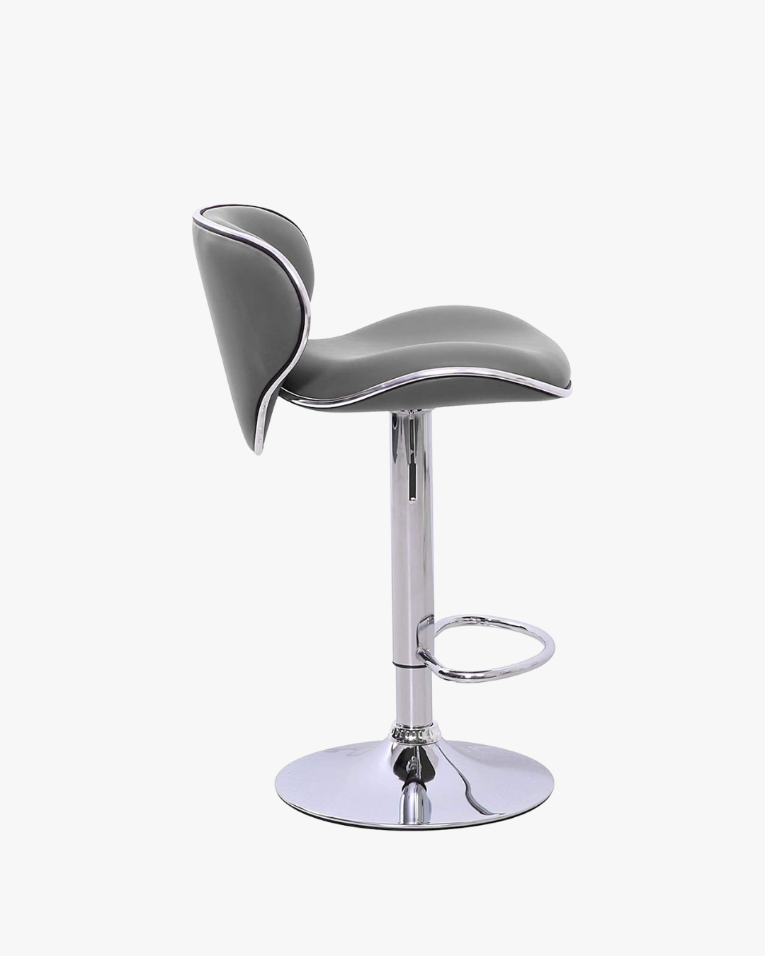 The EVRE Retro Bar Stool in grey is a stylish staple for everyday kitchens. With its neutral finish, it blends seamlessly into modern interiors while offering practical comfort. The padded faux leather seat, swivel, and gas lift height control make it an easy everyday choice.
