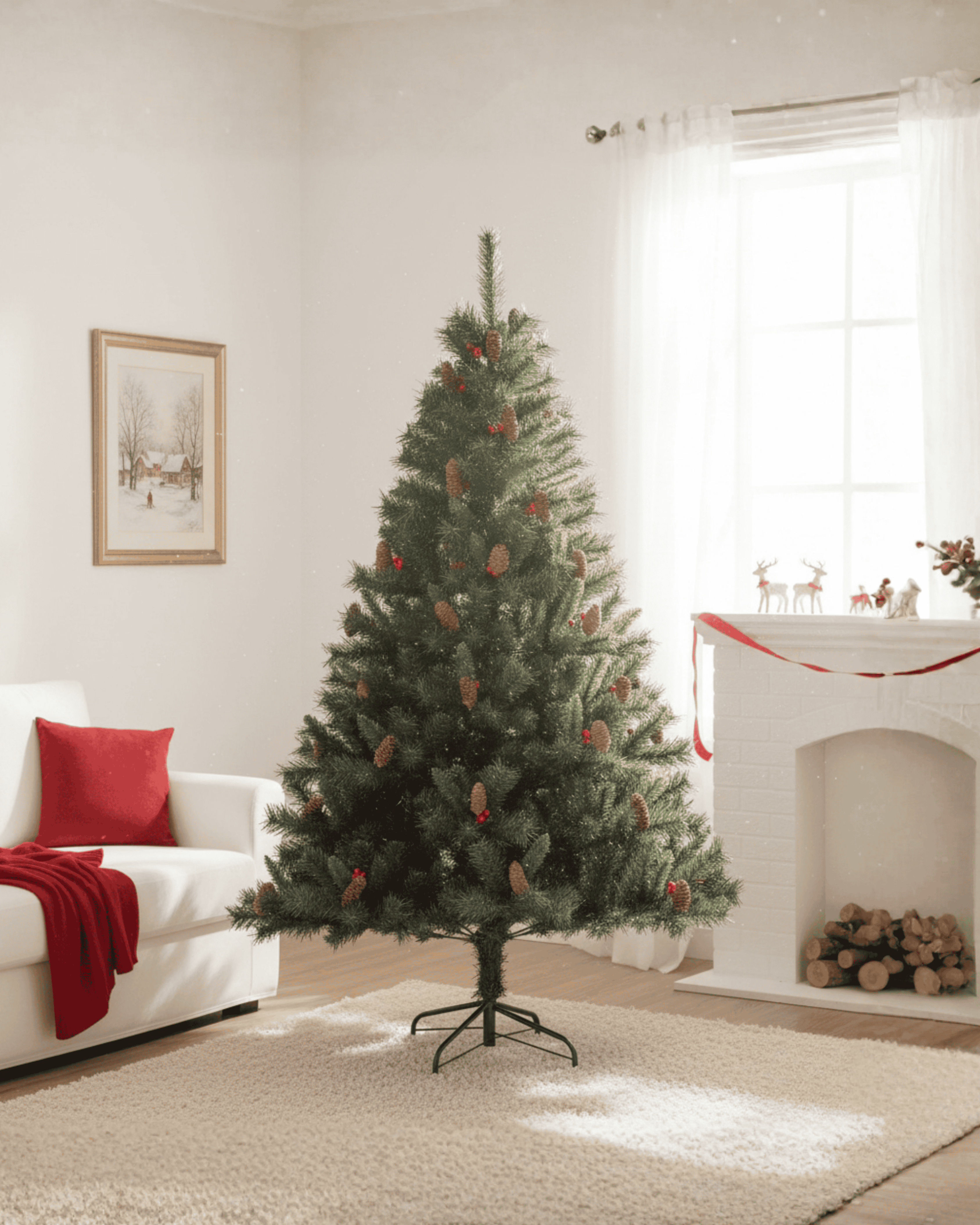 Transform your home into a cosy log cabin getaway with this luxurious 6ft Christmas Tree with Pinecones and Berries. Simply gather your loved ones, and add Christmas lights, decorations, and a beautiful tree topper to complete the festive look.