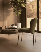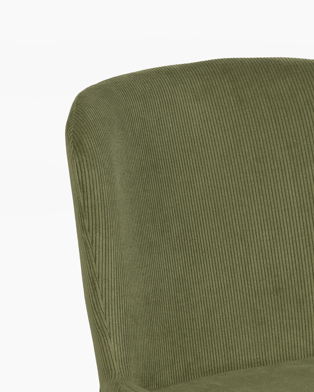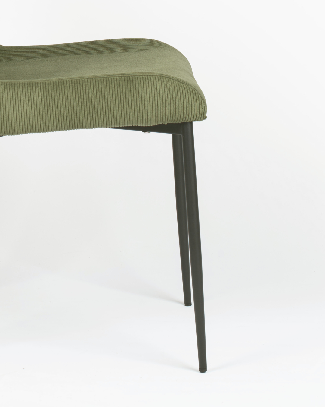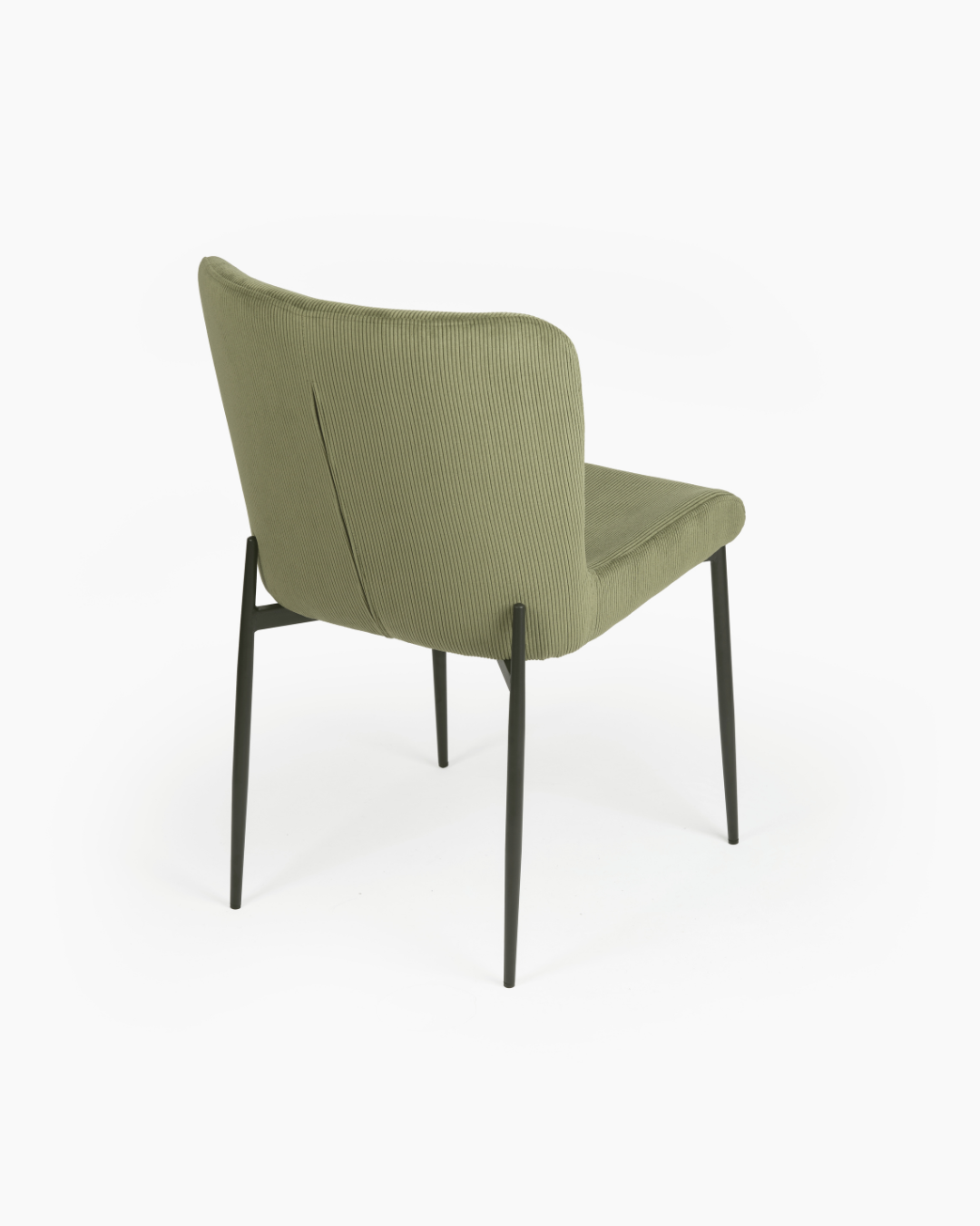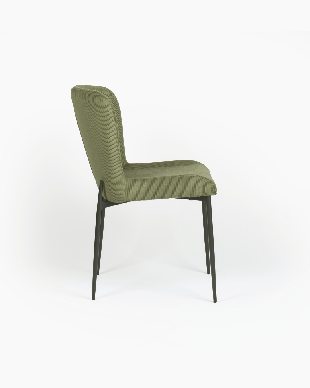 A bold, design-led pair of dining chairs for statement dining rooms, trend-driven interiors, and styled spaces. The green corduroy and sculpted contour shape add instant impact to feature dining areas, creative homes, and modern design settings.