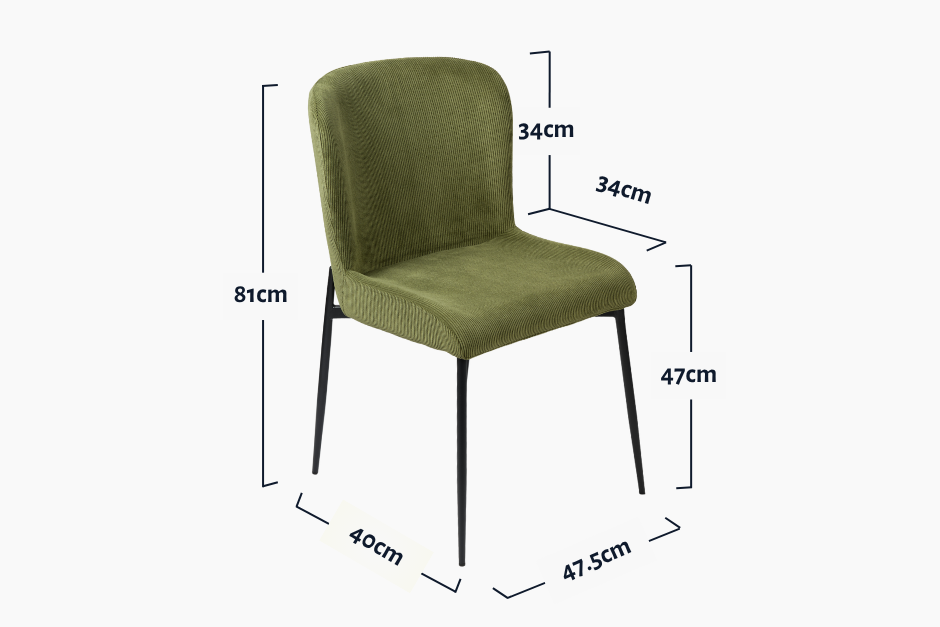 Add a refined pop of colour to your dining space with our green corduroy dining chairs. Sold in sets of two, these chairs strike the balance between comfort and contemporary design.