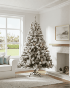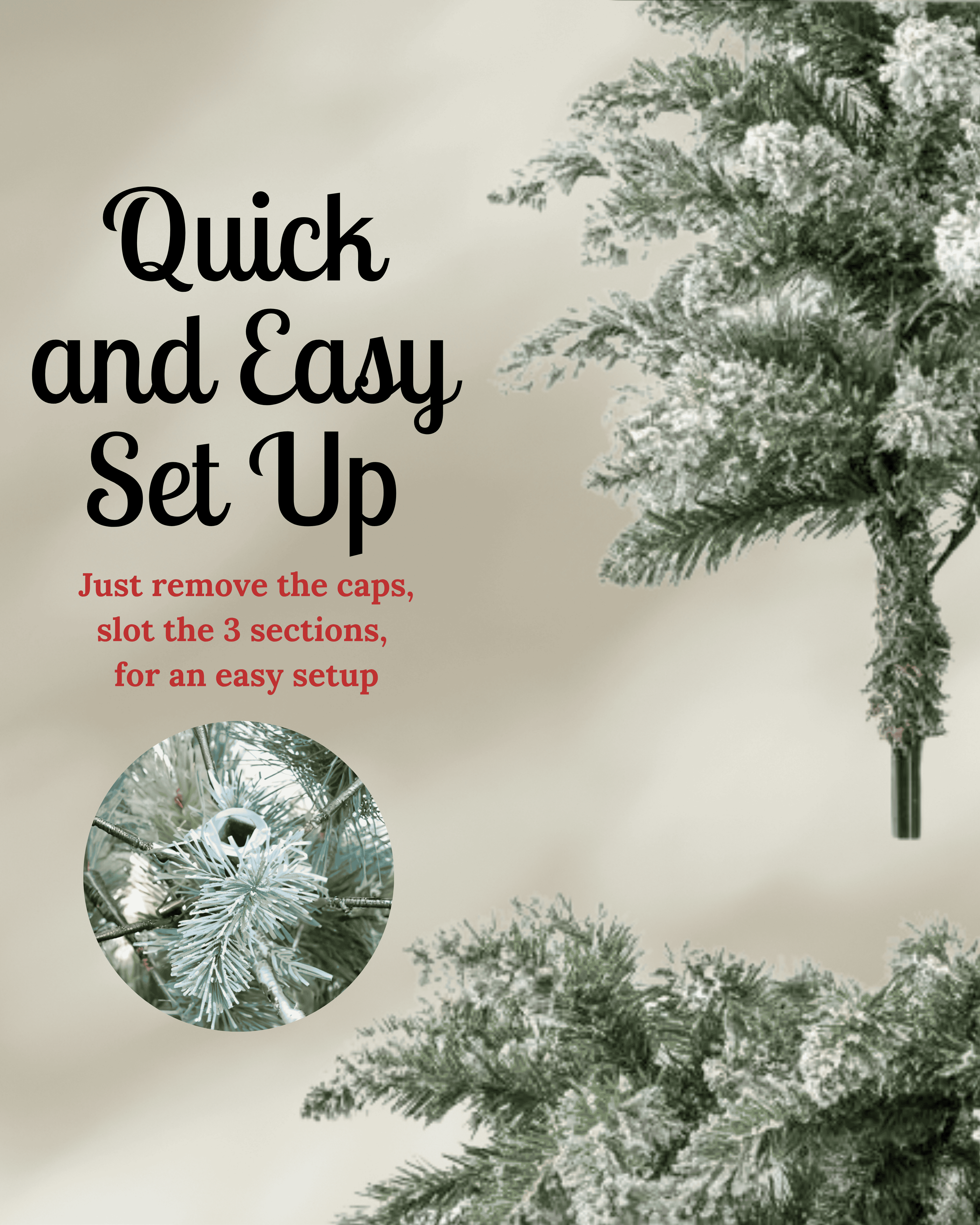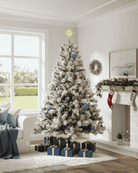 Bring the essence of winter indoors with our snow flocked artificial Christmas tree. This snowy white 6ft Christmas tree blends the snowy charm of winter and the warmth of fall with pinecones and berries.