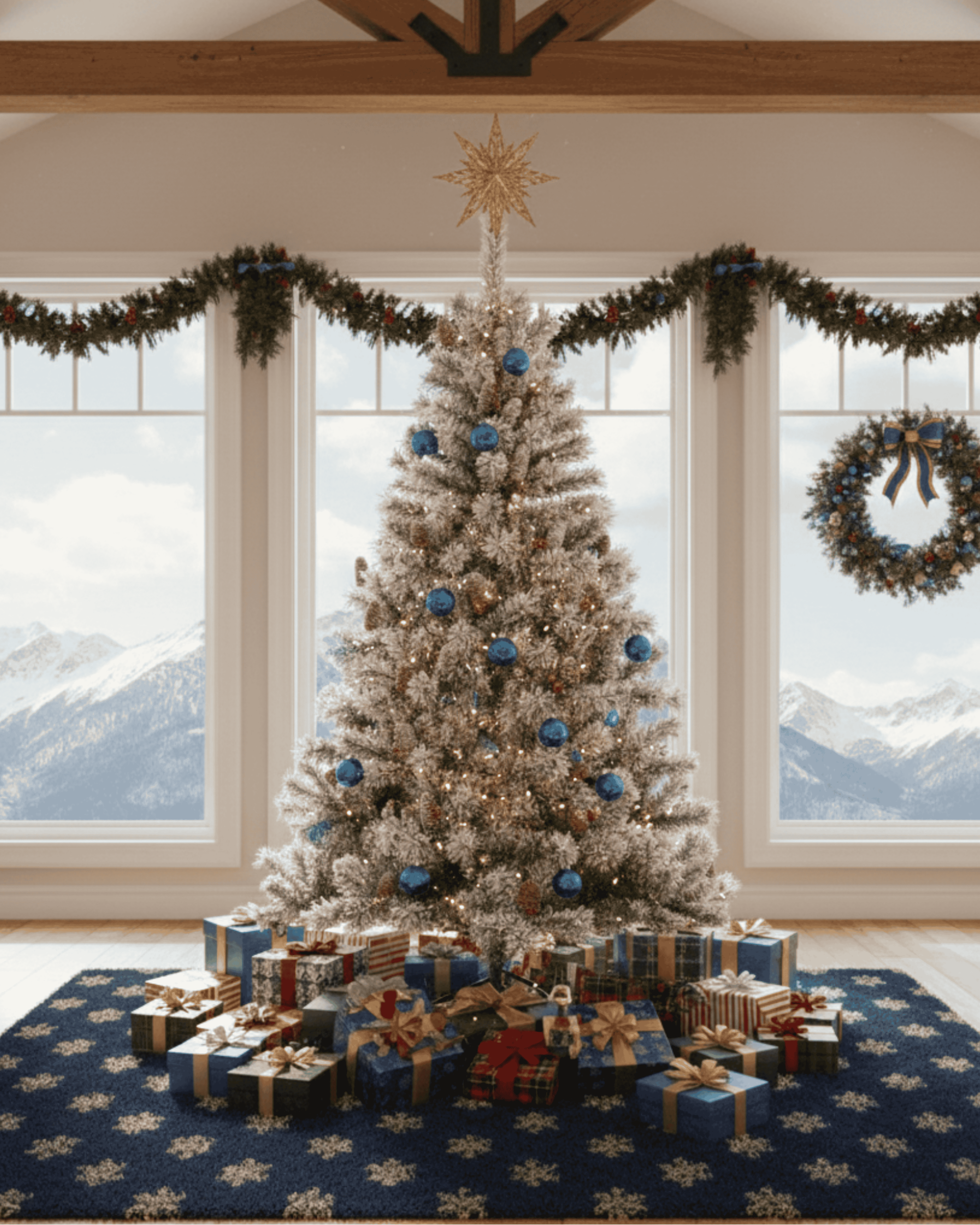 Bring the essence of winter indoors with our snow flocked artificial 7ft Christmas tree. This snowy 7ft Christmas tree blends the snowy charm of winter and the warmth of fall with pinecones and berries.