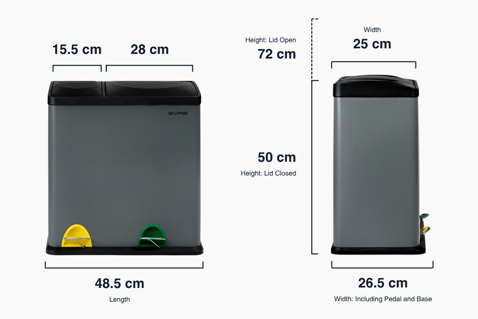 36L Colour Coded 2 Compartment Recycling Bin with Lid, Grey