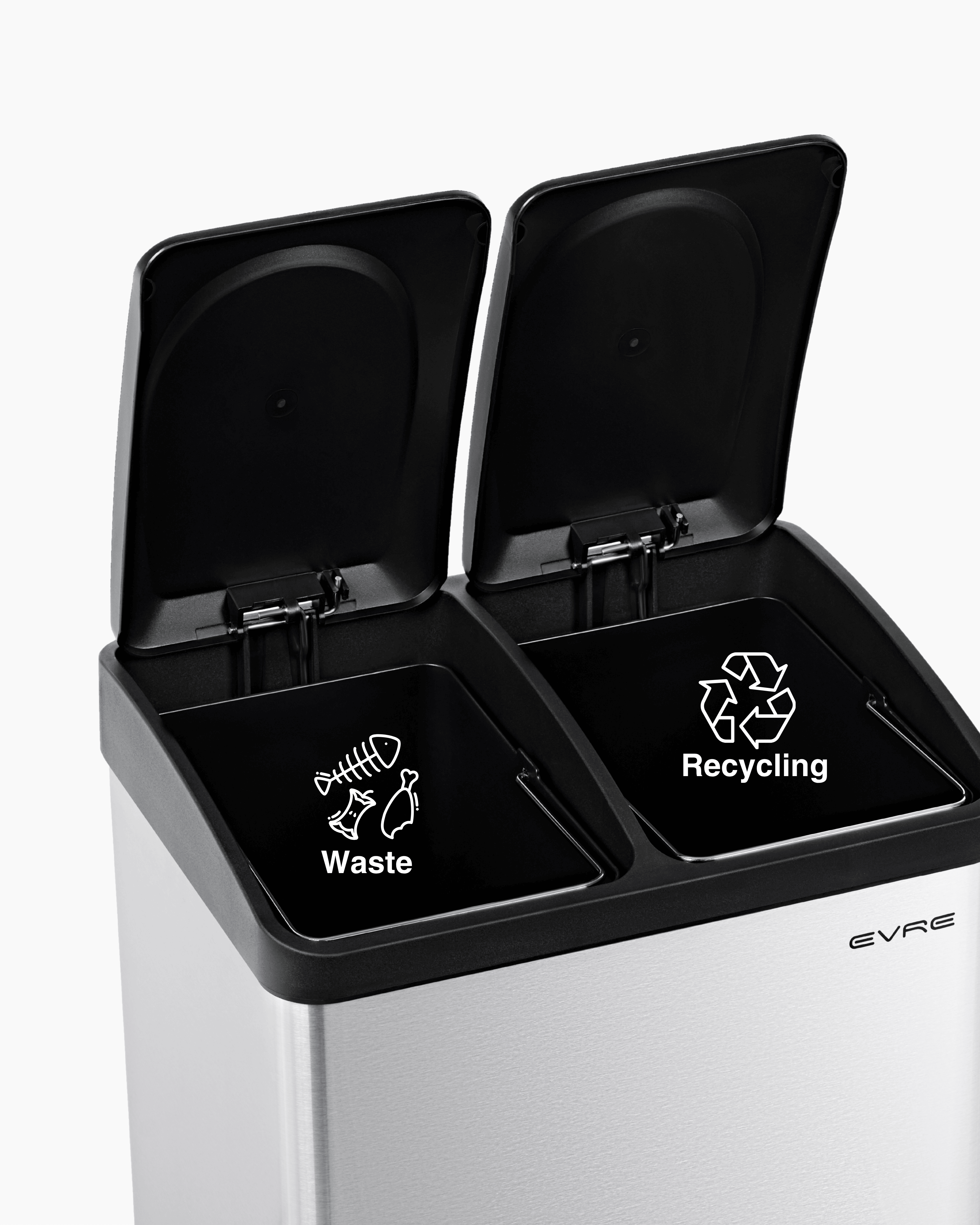30L Dual Compartment Recycling Bin with Lid, Silver