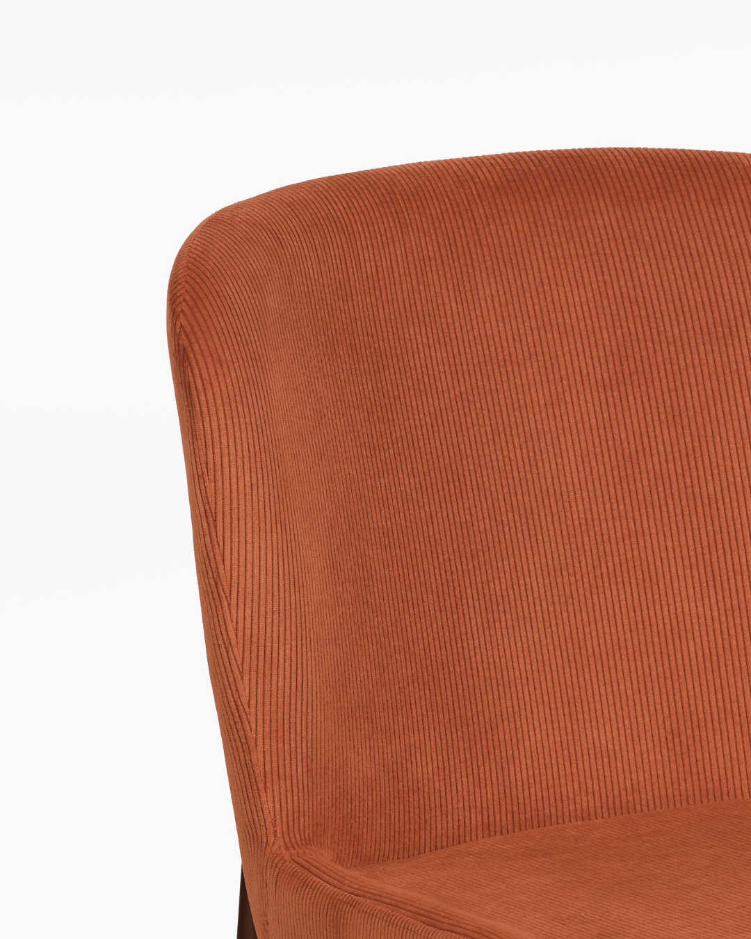 The padded corduroy seats invite long, relaxed meals, while the streamlined armless design keeps the look modern and uncluttered.