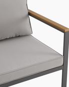 Transform your outdoor space with this sophisticated 5-piece garden furniture set. Complemented by comfortable grey cushions and elegant wooden armrests, Athens makes chilling outdoors stylish again.