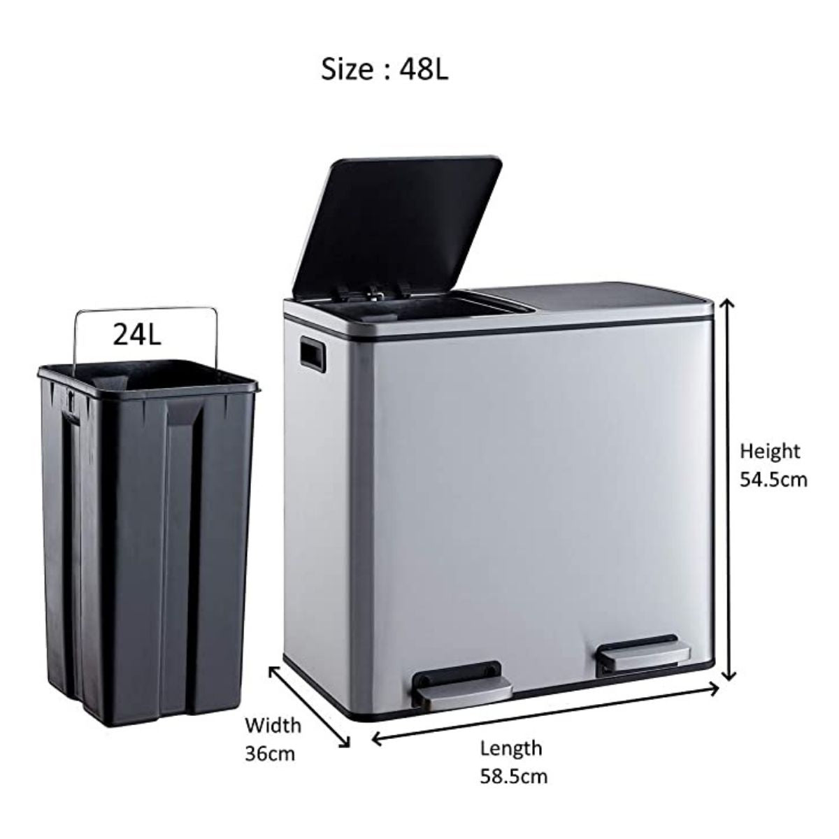 48L - Suitable for medium households. Ideally for 3-4 people with emptying every 2-3 days.