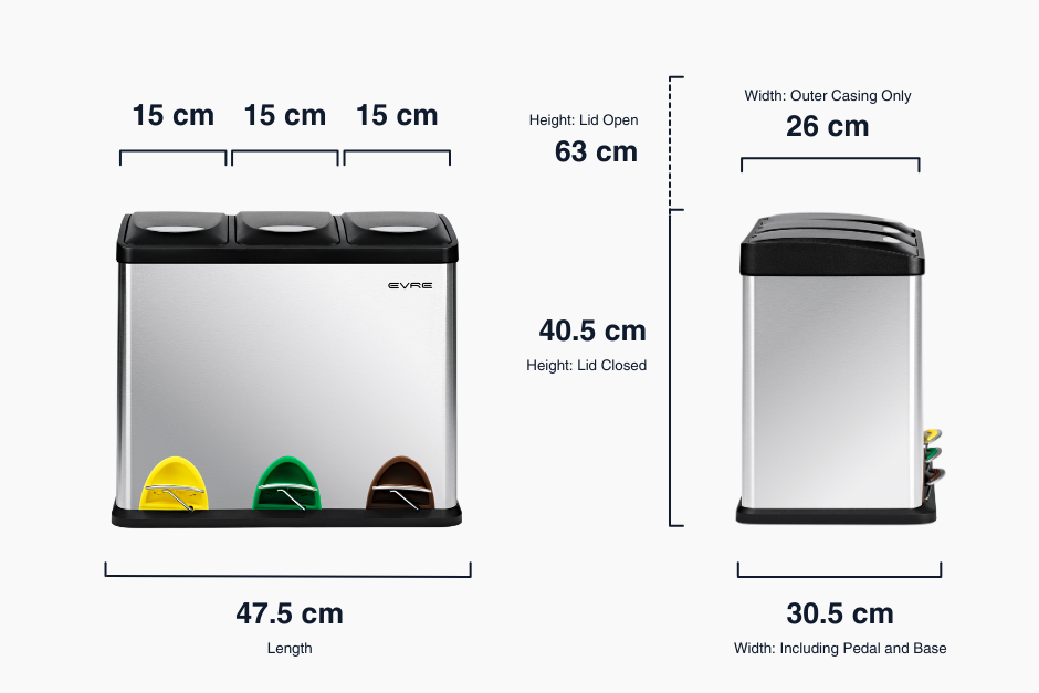 The 24L Dust Bin offers a convenient and organised solution for sorting waste. The lid to each compartment opens separately, making it easy to separate recyclables, general waste, and anything your heart desires.