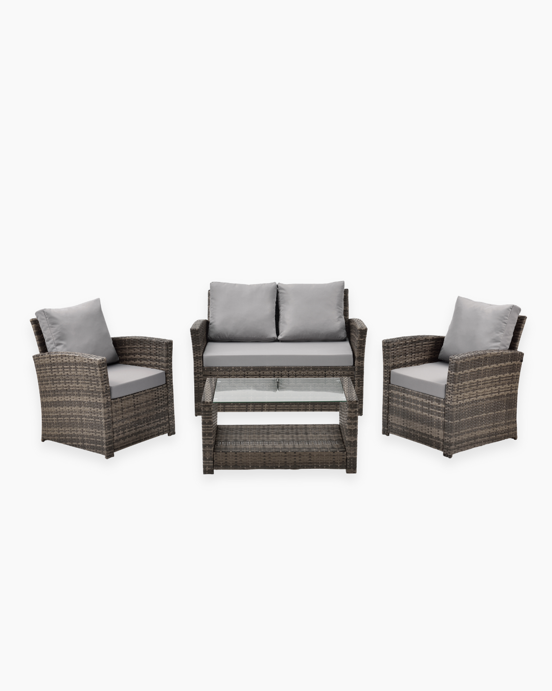 Designed for those who love a slow sip and scenic seat, the Roma 4 Seat Garden Furniture Set provides two comfortable armchairs and one sofa wrapped in durable rattan and softened with padded cushions.