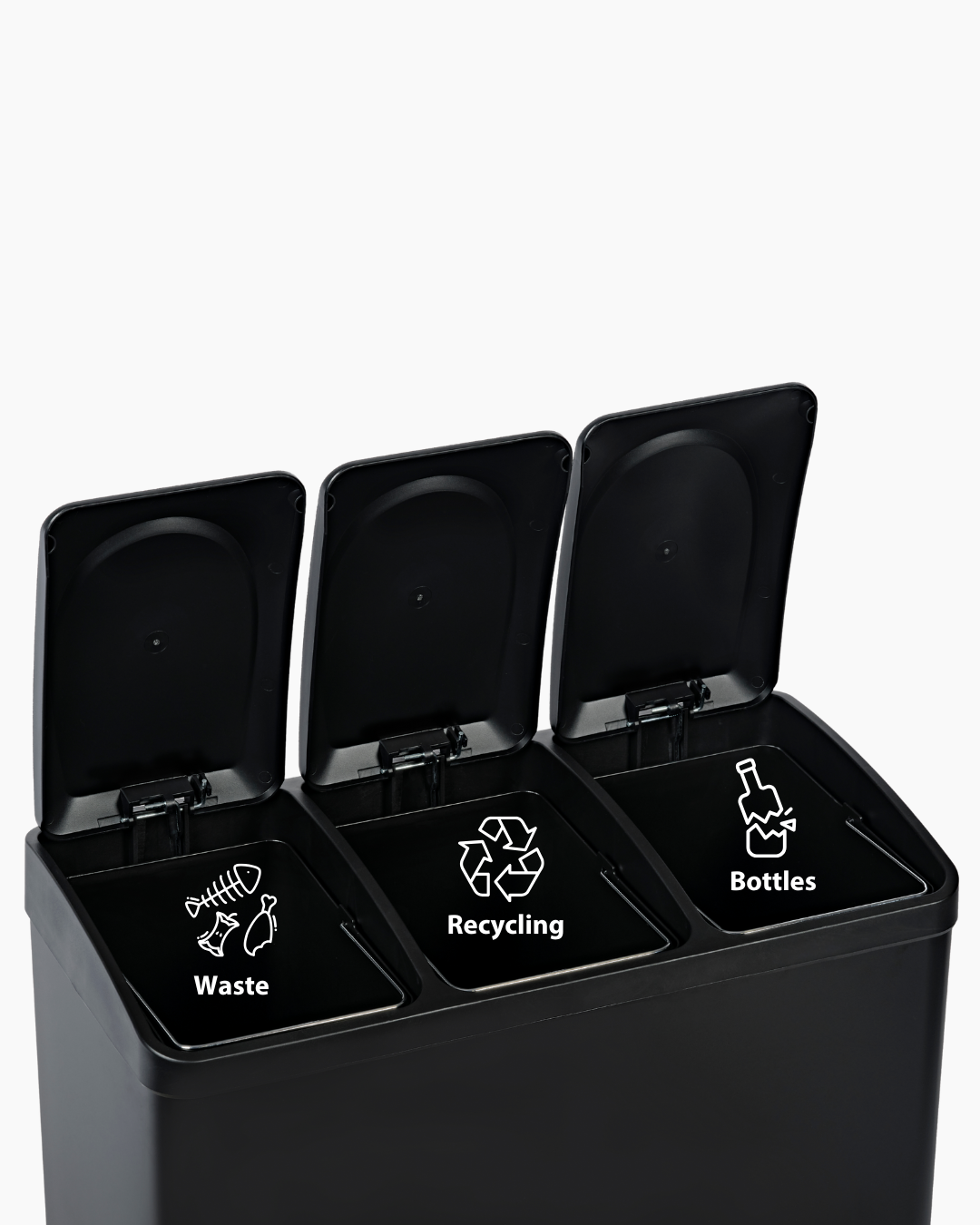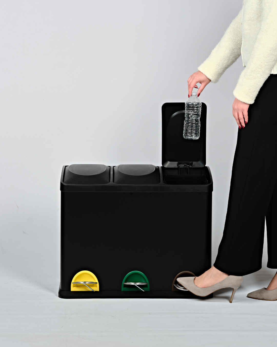 Recycling becomes all the more a breeze with 3 colour differentiated foot pedals for easy waste sorting.