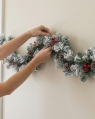 Create a classic winter setting with the 9ft Artificial Christmas Garland with Pine Cones, Berries & Snow Frosting.