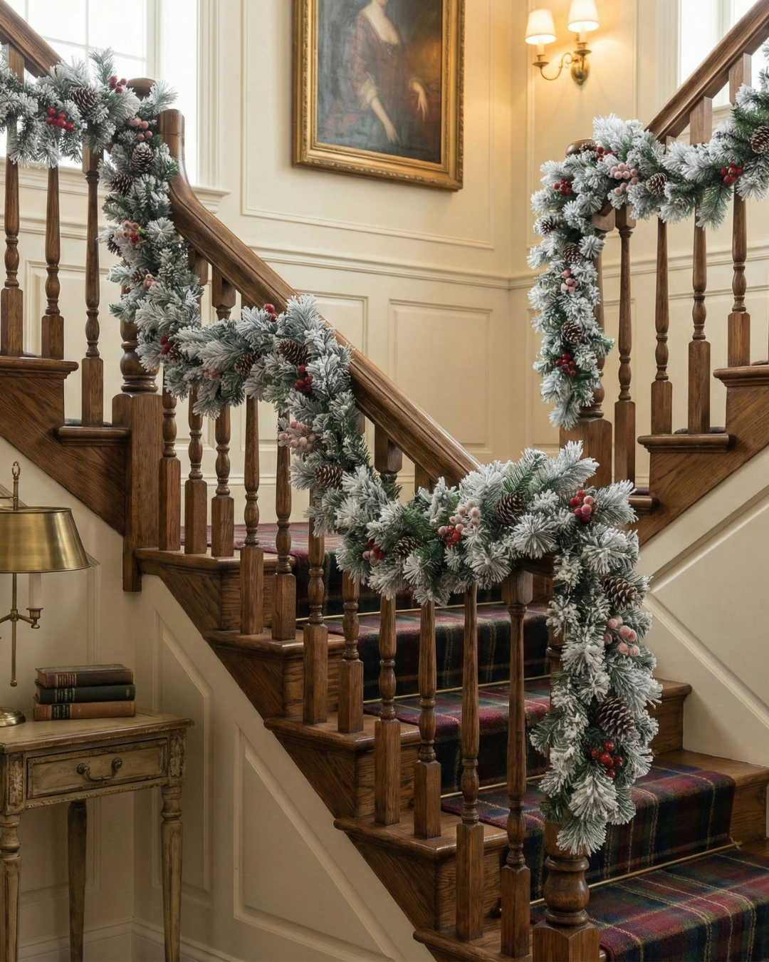 Each strand is hand-finished with pine cones and berries, dusted with delicate snow frosting for a festive yet elegant touch. The generous 9ft length provides endless styling possibilities — from framing your fireplace and entryway to accenting your dining table as a centrepiece.